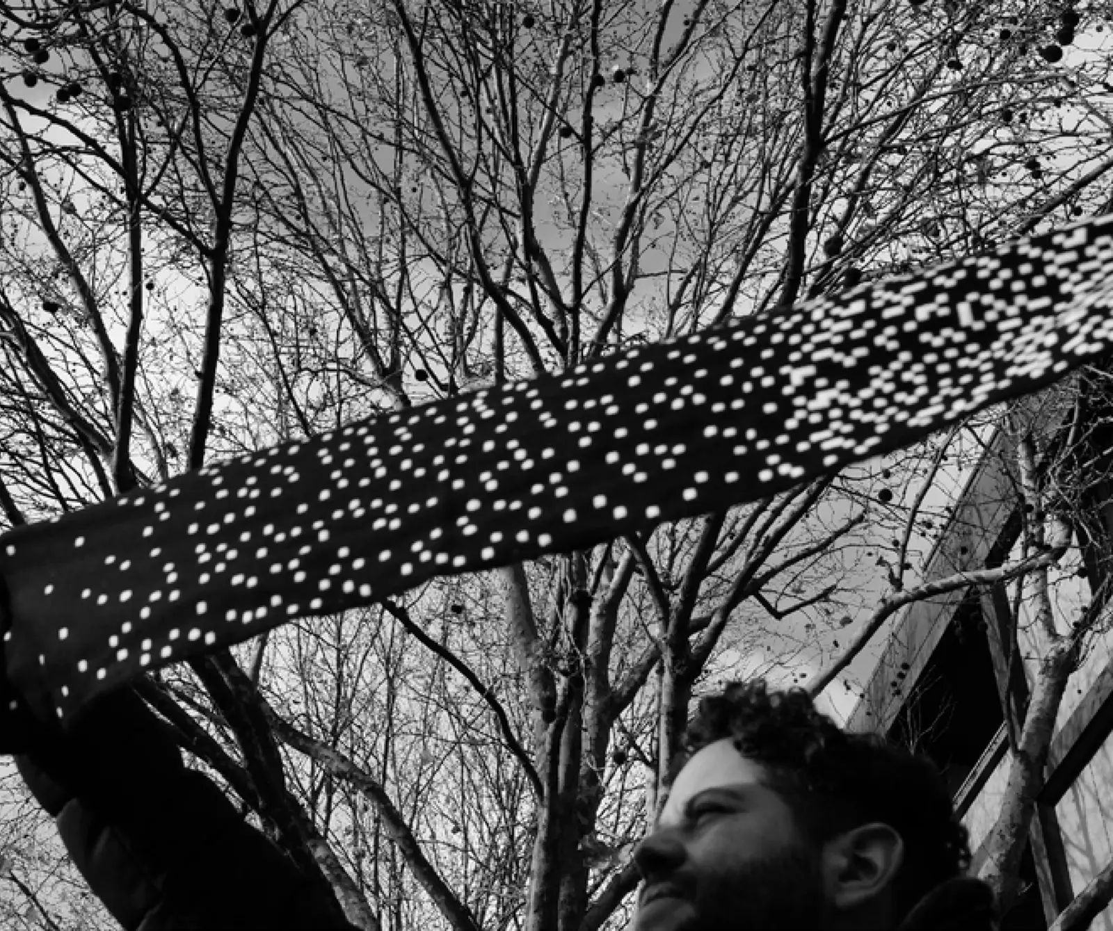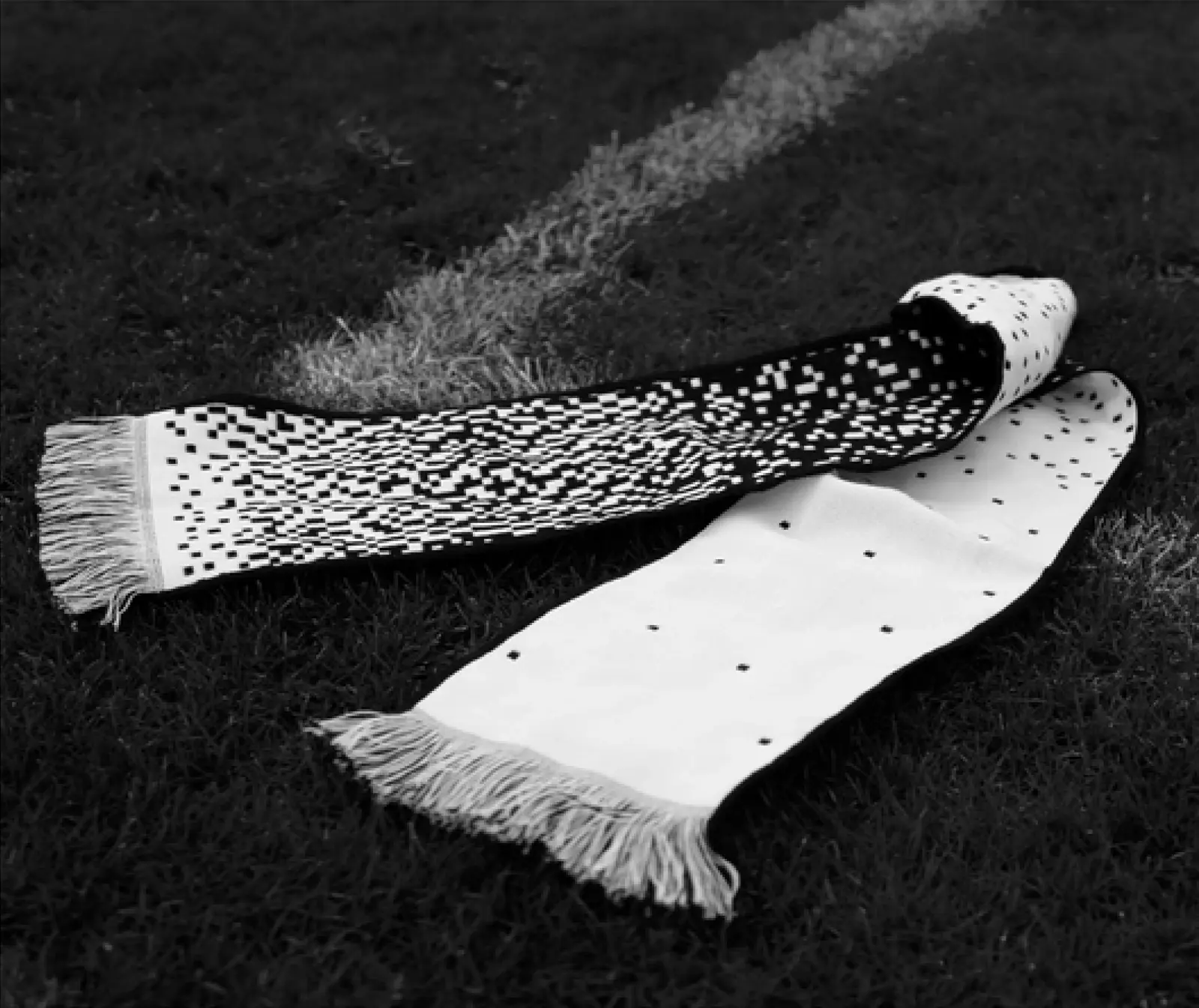 A scarf visualizing the thousands of migrant workers who died building stadiums for the Qatar World Cup, turning data into a wearable symbol that reminds us who we should truly support: human rights.