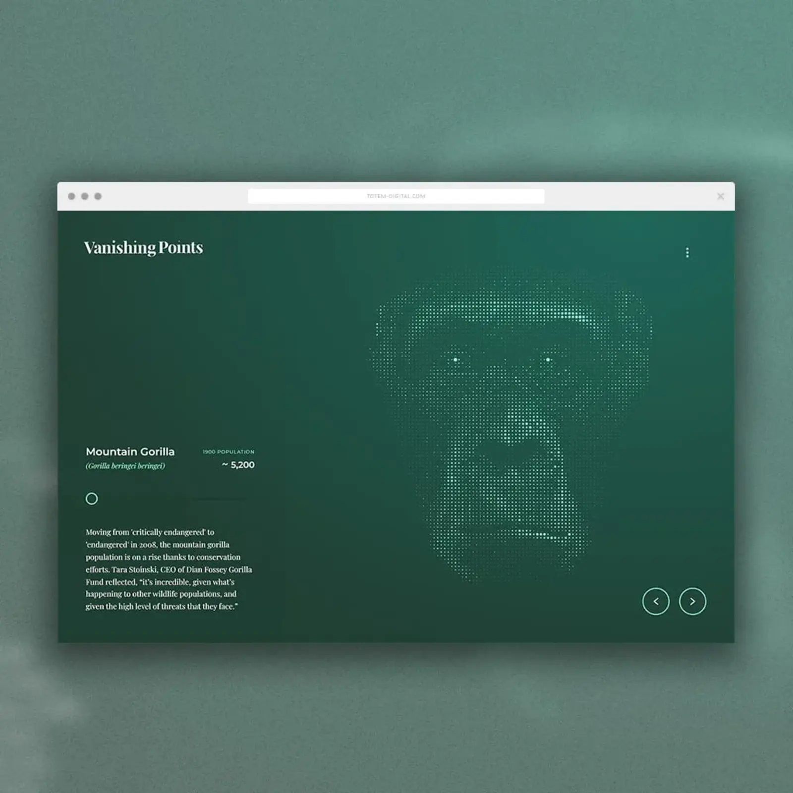 Vanishing Points visualizes endangered species populations, where each dot represents a living animal.