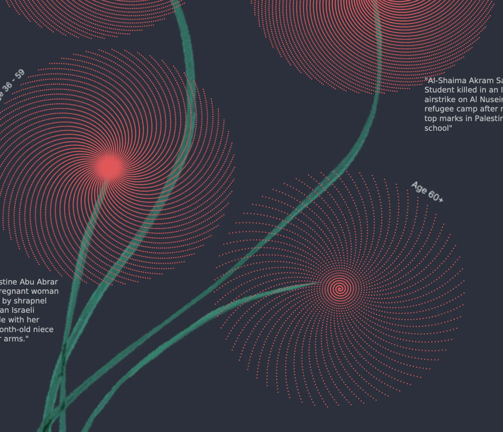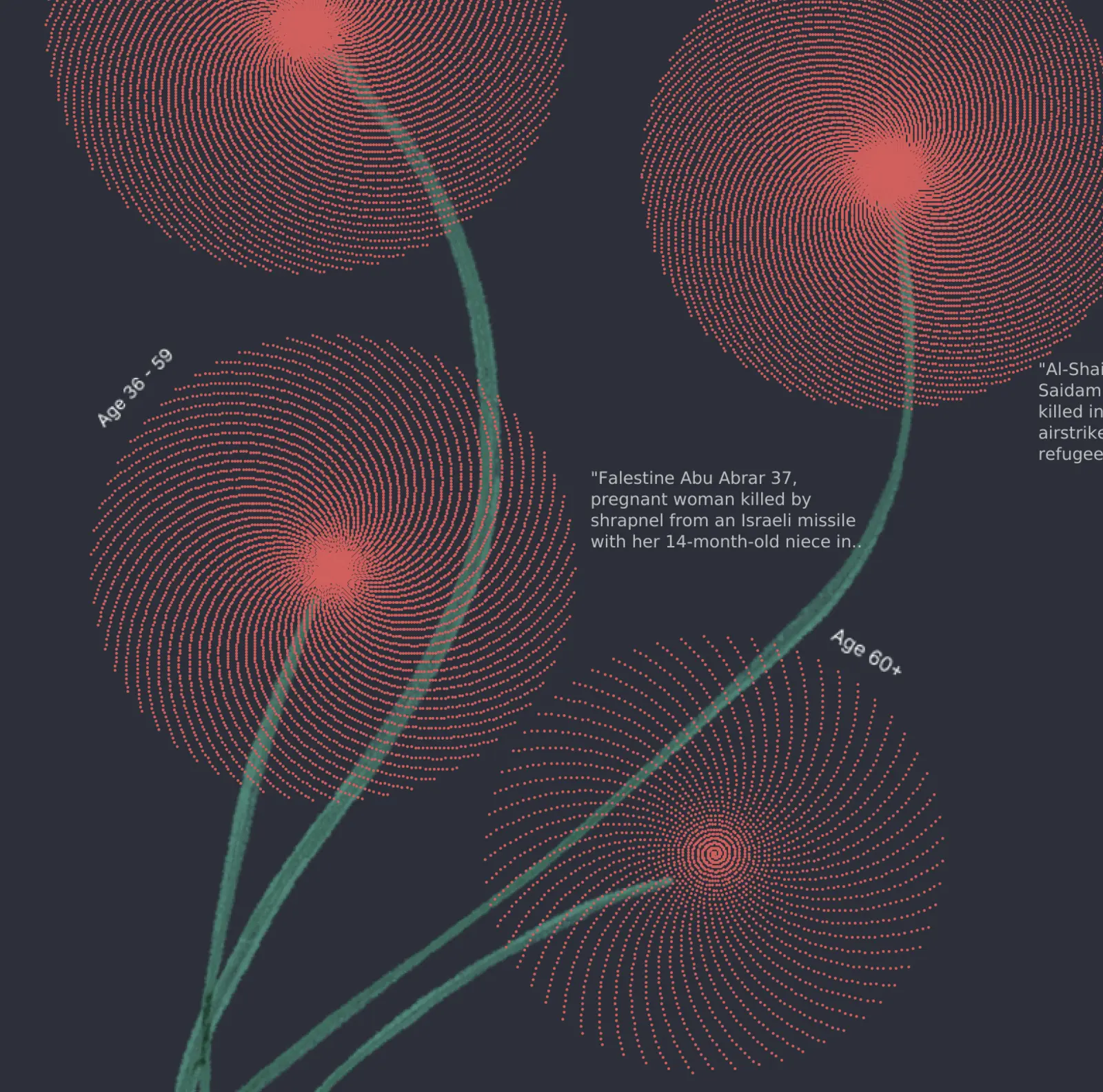 Humanising numbers: each dot represents a life lost, giving meaning to data from Gaza.